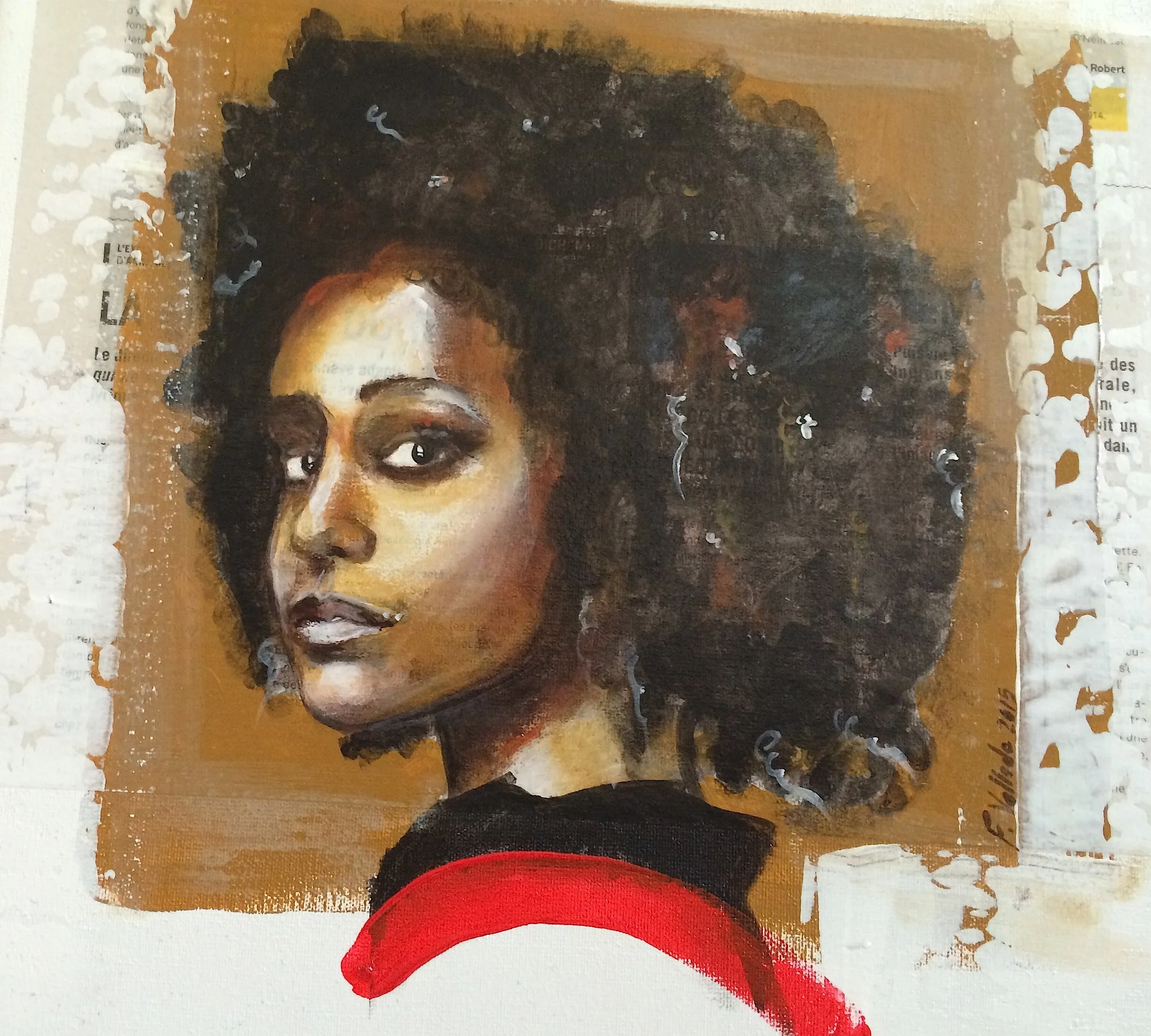 Ceci la pousse à travailler des techniques plus modernes telles que les collages, sur journaux, l’acrylique 3D, le mortier sablé, le Gesso en relief, les enduits, la feuille d’or le feutre et la sculpture intégrée.
