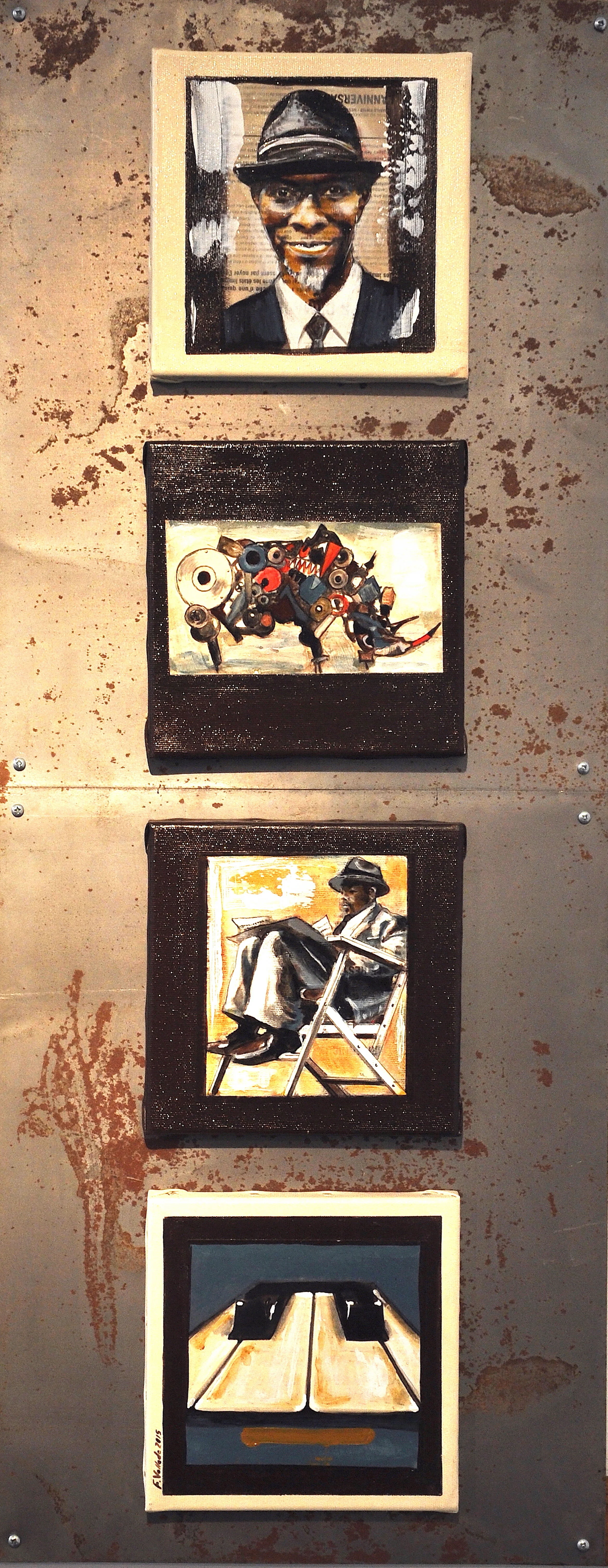 Travaux sur métal rouillé et montures bois - Thème “JAZZ &PEOPLE”